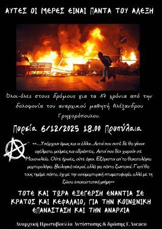 [Grécia] Esses dias são sempre do Alexis – Chamada para a marcha 06/12/2025 (Agência de Notícias Anarquistas - ANA)