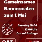 Die soziale Ungerechtigkeit wird immer größer, die Preise steigen und die Löhne kommen nicht hinterher, gleichzeitig macht sich Deutschland kriegsbereit und die Jugend und Arbeiter*innen leiden darunter. Dagegen gehen wir auf am Vorabend des ersten Mai auf die Straße und brauchen dafür Banner, um unseren Inhalt nach außen zu tragen! Kommt gerne dazu, nehmt Freund*innen mit und lernt uns bei entspanntem gemeinsamen Malen kennen! 🗓️ Samstag, 18.04. ⏱️ 15 Uhr 📍 Ort auf Anfrage