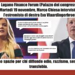 Eva Vlaardingerbroek, commentatrice politica di estrema destra olandese, sarà la relatrice principale del prossimo Lugano Financial Forum martedì 18 novembre, dove dialogherà con Marco Chiesa. Per inquadrare meglio il personaggio, ecco alcune situazioni da lei frequentate in passato: ha parlato al Remigration Summit di Milano, raduno neofascista dove erano presenti personaggi come Martin Sellner (bannato da Germania e Svizzera) e Dries Langenhove (leader di Schild & Vrienden, antisemita e negazionista dell’Olocausto). È intervenuta al CPAC Hungary, dove erano presenti persone da lei stimate come Alice Wiedel (AFD) e Viktor Orbán. Ha partecipato alla marcia neofascista a Londra (supportata da Elon […]
