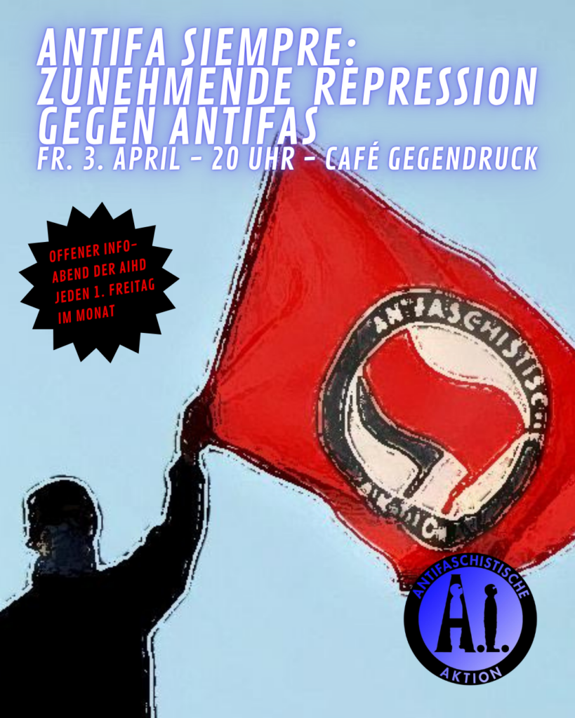 OFFENER ANTIFA TRESEN *English translation below* Samstag, 04.04.26| ab 19:00 Uhr | Bandito Rosso*, Lottumstraße 10a, 10119 Berlin Um etwa 20 Uhr gibt es den Vortrag „Kommunismus -immer autoritär?“ von der Roten Hilfe Berlin. Außerdem: – Spendensammlung – veganes Essen – kalte Getränke – Soli-Cocktails – Tischkicker – Stickerbörse *leider nicht barrierearm (Treppe mit 7 Stufen am Eingang: Außen-Klingel betätigen, wenn ihr Unterstützung braucht!; einzelne Stufen im Innen-Bereich; Holzstühle mit Rückenlehne und ein Sofa; abgetrennter Rauch-Raum, Rückzugs-Raum; englische Flüster-Übersetzungen auf Anfrage) ***English*** OPEN ANTIFA BAR Saturday, April 4th 2026 | from 7 p.m. | Bandito Rosso*, Lottumstraße 10a, 10119 Berlin […]