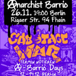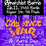 📍 7pm at Rigaer94, Rigaerstr.94, Berlin-Friedrichshain ✅ Make some space in your calendar and save the dates! Come to the meeting to join the planning of the upcoming A-BARRIO-DAYS: for a continuous struggle against militarization 12th to 14th of December. At the meeting we will also review the final version of the evaluation text. 📧 CONTACT: https://anarchistbarrio.noblogs.org/#contact ____ ⬇️ Here’s once more the invitation for A-BARRIO DAYS in December: 🏴 A-BARRIO DAYS – for a continuous struggle against militarization 12.—14. December 2025 ╰─➤ We need your feedback! Let’s organize it together! Dear comrades, after the A-Barrio at the Rheinmetall-Entwaffnen-Camp and […]
