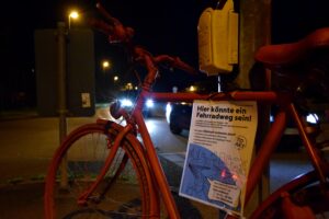 Am Abend des 06.11.25 sind in der Südstadt an einigen Straßenecken bunt angemalte Räder aufgetaucht. Auf Schildern, die an den Rädern befestigt wurden, lässt sich lesen: „Hier könnte ein Fahrradweg sein!” Mit den Rädern wollen wir auf die Notwendigkeit alternativer Verkehrsplanung rund um die Stuttgarter Straße hinweisen. “Die Anwohner*innen der Südstadt werden seit Jahrzehnten mit dem Verweis auf den Bau des Schindhaubasistunnels vertröstet,” heißt es auf den Schildern. Der Schindhaubasistunnel soll die Stuttgarter Straße entlasten, welche ein stark befahrener Teil Tübingens ist. Diese Straße führt zu enormer Belastung durch Lärm, (Fein-)Staub und Abgase. Außerdem verspäten sich die Busse durch Staus, […]