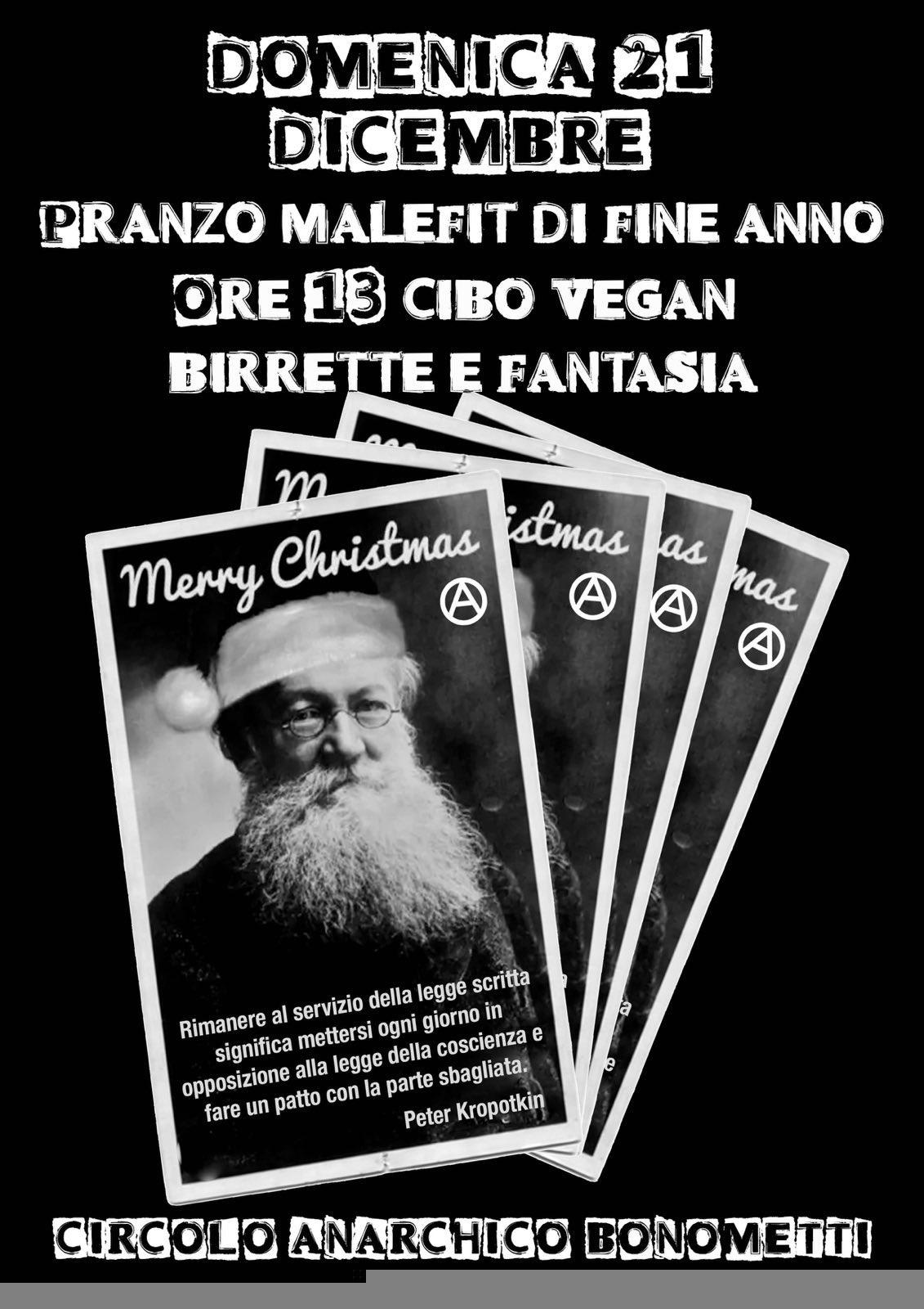 Har-DÙO sporco bluesJEKOCRIMINAL stonerIN CONCERTODOMENICA 21 DICEMBREORE 18:30A seguire Luppolo selecterBenefit stampaanarchica BIBLIOTECAANARCHICADISORDINEVIA DELLEANIME, 2/BLECCE distro stampa anarchica,panini, bar disordine@riseup.net,disordine.noblogs.org Quali forme prenderà l’agitazione? – Le forme più varie volute dalle circostanze, dai mezzi, dai temperamenti. Ora lugubre, ora beffarda, ma sempre audace; ora collettiva, ora puramente individuale, essa non trascura nessuno dei mezzi che ha nelle mani, nessuna circostanza della vita pubblica, per tener sempre desto lo spirito, per propagare e formulare malcontento, per eccitare l’odio contro gli sfruttatori, per deridere i governanti, dimostrare la loro debolezza, e soprattutto e sempre risvegliare l’audacia, lo spirito di ribellione, predicando con […]