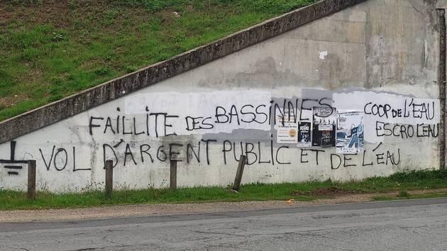 Sur la maison du Canal on peut lire ce matin : « Pas de mégacanal à Péronne » ; « Pas de mégabassine à Péronne » ; « Nous, habitant.e.s, exigeons un moratoire » ; « Qui va payer les 10 milliards ? ». (Contre le canal Seine-Nord Europe)