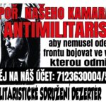 Příspěvky posílejte ve prospěch účtu Dezertéra: 7123630004/5500 (do poznámky napište „kamarád“) nebo pohodlně qr kódem, částka je nastavená na 150 Kč, lze ji upravit dle svého uvážení. Pomozte nám v peněžní sbírce na uhrazení výdajů spojených s vyřízením úředních záležitostí našeho antimilitaristického kamaráda, aby mohl zůstat v Česku a nebyl odveden do války na Ukrajině. Náš kamarád je volyňský Čech, ale má ukrajinský pas, kterému prošla platnost. V Česku žije bezmála 30 let a odmítá být masem pro děla ve válce! Bez platného pasu nemůže legálně pracovat, ačkoli má zde trvalý pobyt! Na ukrajinském velvyslanectví ani na ministerstvu mu nepomohli, […]