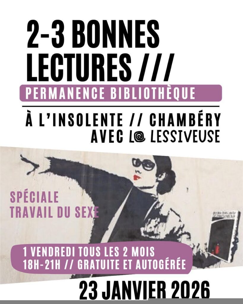 Echanges avec Cybèle Lespérance sur le thème du travail du sexe Permanence Bibliothèque de la Lessiveuse et de l’Insolente – 23 janvier 2026 (la lessiveuse)