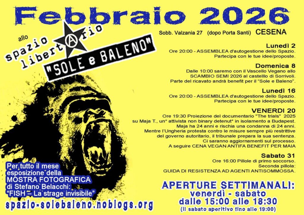 Riceviamo e diffondiamo: VENERDI’ 30 GENNAIO 2026 allo Spazio Libertario “Sole e Baleno”, Sobborgo Valzania 27, Cesena. Ore 19:30 – Cena Vegan BENEFIT PER LA LOTTA IN SUDAN. Ore 20:30 – ECHI DAL SUDAN IN LOTTA. In collegamento con un compagno dal Sudan.