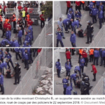 Franck C ., Xavier F., Michaël M., Laurent P. et Frédéric P., « une chance pour la France » Les agents des forces de l’ordre comparaissent, le 5 septembre, pour violences aggravées, faux et tentative d’escroquerie. La victime, un supporter de football niçois, a dû batailler pendant sept ans contre vents et marées pour faire valoir ses droits. Source : https://www.mediapart.fr/journal/france/040925/six-policiers-sont-juges-nimes-pour-violences-aggravees-en-marge-d-un-match-de-ligue-1