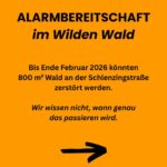 Jede Rodung muss verhindert werden, sei das Gebiet noch so klein! Industriegebiete gibt es genug, auch leerstehende. Wir brauchen Naturgebiete in der Stadt – für das lokale Klima, als Lebensraum und Erholungsort! Der WiWa ist ein Wald, kein Baugebiet! Die Stadt Hamburg „braucht“ einen Teil des Firmengeländes für geplante Sportplätze. Dafür soll BM-Bau eine andere, größere Fläche bekommen, die zum Wald gehört. Obwohl das sog. Spreehafenviertel noch gar nicht beschlossen ist, wollen sie das jetzt vorziehen, weil ihr Gelände zu klein sei. Die Stadt hat Bau- und Rodungsantrag gestellt und die Umweltbehörde sagt, dass sie den genehmigen wird. Mehr Infos […]
