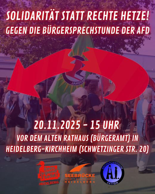 Der Freundeskreis gegen rechts Balingen unterstützt die Anti-AfD-Proteste am 23. November 2025 in Hechingen. Los geht’s in aller Frühe ab 7 Uhr. Darauf folgt eine linke Kundgebung 10.30 bis 13 Uhr und eine bürgerliche Kundgebung. Wir fänden es super, wenn auch schon sehr früh am Morgen Menschen gegen die AfD protestieren, weil nur dieser Protest die anreisenden AfD-Delegierte direkt mit Widerspruch konfrontiert.