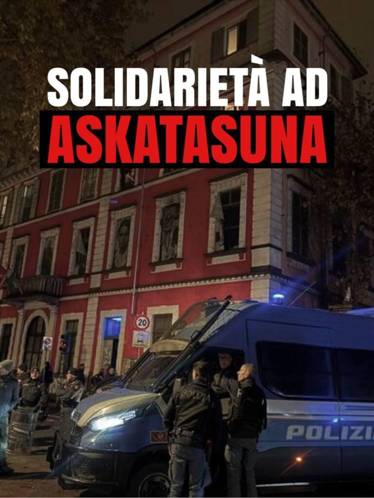 Il brusco risveglio inflittoci dalla questura di Torino, su ordine del governo Meloni e del ministro Piantedosi, ci ha fatto compiere l’ennesimo passo verso l’Ungheria di Orbán. Sgomberare Askatasuna e revocare il percorso per diventare un Bene Comune significa lanciare un messaggio non solo alle diverse realtà politiche e militanti torinesi, ma a tutto il paese. Era già successo con il Leoncavallo a fine agosto. Colpire Askatasuna significa tentare di smantellare una lunga storia. È proprio questa la storia che l’estrema destra di governo tenta di criminalizzare, perché la storia dei centri sociali è la storia di chi ha sbarrato […]