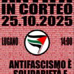 Riceviamo e diffondiamo: ⚡⚫ ANTIFA IN CORTEO 🔴⚡ 📅 25 ottobre 📍Stazione Lugano (lato Besso) ⏰14:00 🎵 A seguire musica 🎵 Nel Ticino dell’ipocrisia e delle destre che rialzano la testa, assistiamo al diffondersi di varie forme di odio: razzismo, sessismo, omotransfobia, supporto o per lo meno silenzio complice davanti al genocidio in Palestina. Per questo chiamiamo tutt* quant* a riprendersi le strade e le piazze che la repressione prova a svuotare. Vogliamo rilanciare una manifestazione antifascista che unisca pratiche, ideali e lotte mai scomparse. Una manifestazione che ci porti a fare rete, per diventare diga contro il marcio che […]
