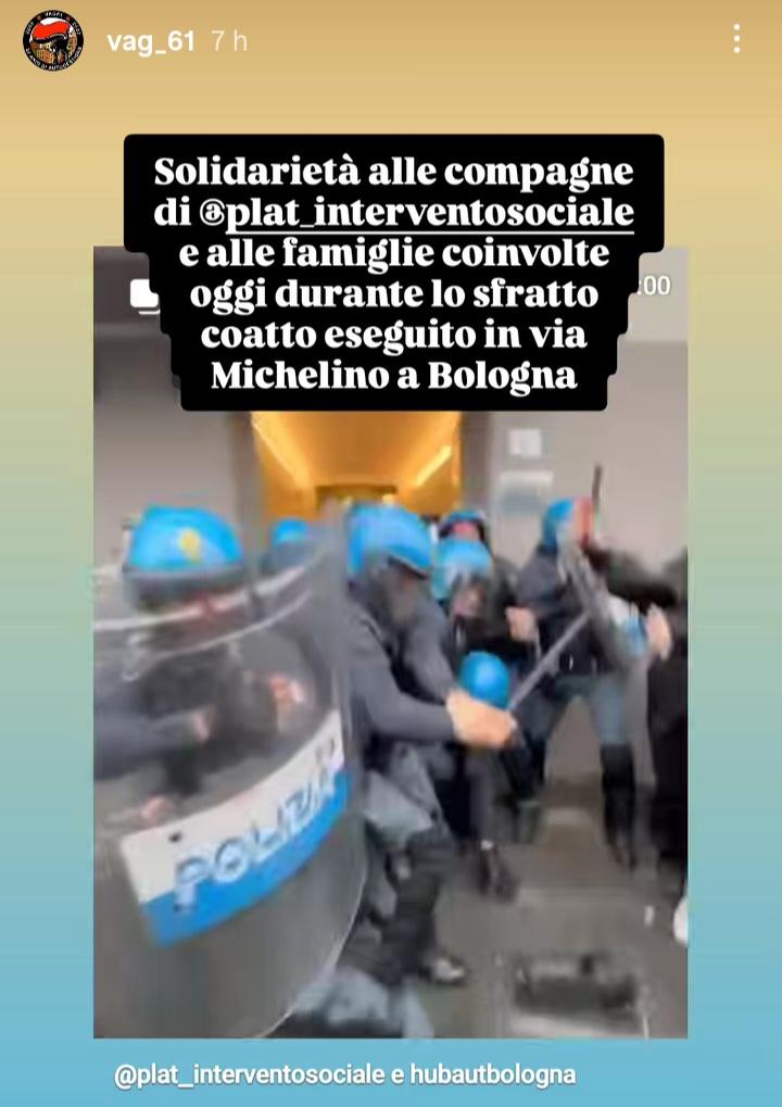 Solidarietà alle compagne di Plat e alle famiglie coinvolte oggi durante lo sfratto coatto eseguito in via Michelino a Bologna