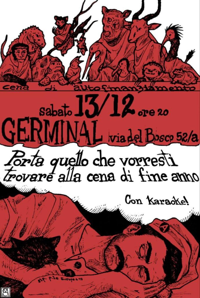 Come ogni anno anche in questo dicembre ci sarà la famosa CENA del Germinal!E anche quest’anno approfitteremo della più bella data del mondo! (liberamente interpretabile)Quindi SABATO 13/12 tenetevi liber3 e come sempre portate ciò che vorreste trovare: buon cibo vegan/veg, drinks analcol o alcol ma soprattutto tanta voglia di stare insieme per chiacchere, giocare, ma poi anche…CANTARE!Quest’anno le vostre ugole saranno surriscaldate da uno scoppiettante KARAOKE finale!
